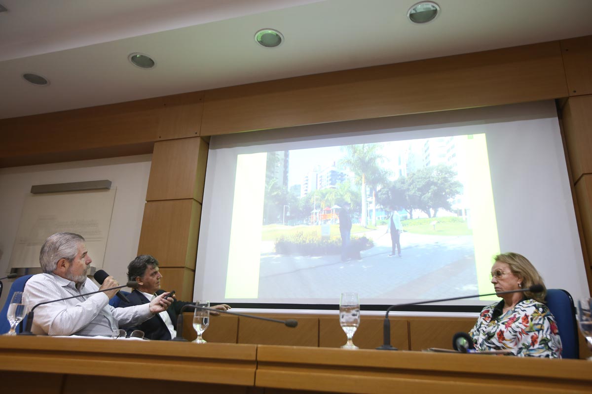 A arquiteta Fernanda Menezes, da empresa Viglieca e Associados mostrou os estudos que foram desenvolvidos para a revitalização da praça Tancredo Neves, trabalhando a questão do resgate histórico e com a multiplicidade de atividades como espetáculos teatrais, shows, pequenos empreendimentos, cafés, estacionamento.