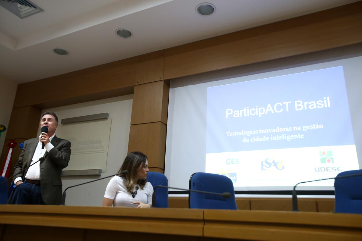 O encontro foi encerrado com a apresentação do aplicativo ParticipACT Brasil, pelo professor Carlos Alberto De Rolt, da Udesc. O APP é a ferramenta para inclusão do cidadão na gestão das cidades inteligentes. Nele as pessoas podem registrar os problemas do dia a dia de Florianópolis, como falta de segurança, iluminação, buracos nas vias, lixo exposto, atraso de ônibus, falta de acessibilidade, entre tantos outros. É uma forma das pessoas participarem ativamente mostrando ao poder público aquilo que encontrarem de errado em seu caminho. “É o que chamamos de crowdsensing ou sensoriamento realizado colaborativamente por multidões para o entendimento do mundo real”, explicou o professor. O APP pode ser baixado gratuitamente pelo Google Play ou App Store.