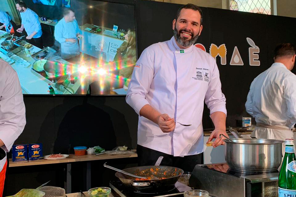 Daniel não ganhou o concurso, mas levou, com muita categoria, o nome da capital catarinense para além-mar, com a receita Gnocchi della Terra, um nhoque feito a base de batata doce, com molho vermelho. “Que momento hoje, desde a produção pela manhã até o momento do concurso. E que concurso foi este, explicar todo o prato e contexto em italiano e cozinhar para um júri internacional, incluindo a ALMA la Scuola Internazionale di Cucina Italiana, a Bocuse d’Or e jurados da CIBUS International Food Exhibition. Infelizmente não conquistei o primeiro lugar do concurso. Mas vou ser sincero, já conquistei muito de estar aqui competindo com estes chefs e participando de todo este evento”, disse Daniel ao final do concurso, que foi citado pela imprensa internacional em matéria que pode ser conferida aqui. O ganhador do concurso foi o chef Pieter Sypesteyn, da cidade de San Antonio, no Texas (EUA), que será apresentado oficialmente durante a Conferência Anual da Rede Mundial de Cidades Criativas UNESCO, a ser realizada em junho, em Fabriano.