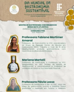 – Professora Flávia Losso, IFSC, especialista em gastronomia, turismo e hotelaria
