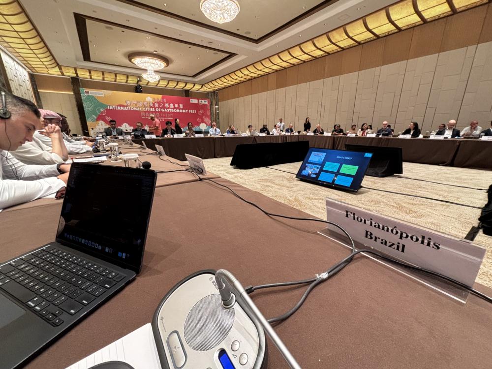 A comitiva, formada por representantes da FloripAmanhã, da Prefeitura Municipal de Florianópolis e seis chefs locais, representou o Programa Florianópolis Cidade Criativa UNESCO da Gastronomia, de 11 a 20 de julho de 2025, na Festa Internacional das Cidades de Gastronomia, em Macau, na China.