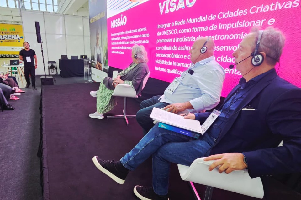 Entre os destaques da programação, o painel “Turismo + Gastronomia – Como Aproveitar a Sazonalidade e Eventos para Faturar Mais” contou com a participação da conselheira da FloripAmanhã Anita Pires — coordenadora do programa Florianópolis Cidade Criativa UNESCO da Gastronomia — ao lado do chef Narbal Corrêa, da Confraria Sabores de Floripa.