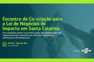 Inscrições: https://www.sympla.com.br/evento/encontro-de-cocriacao-para-a-lei-de-negocios-de-impacto-em-santa-catarina/3137032
