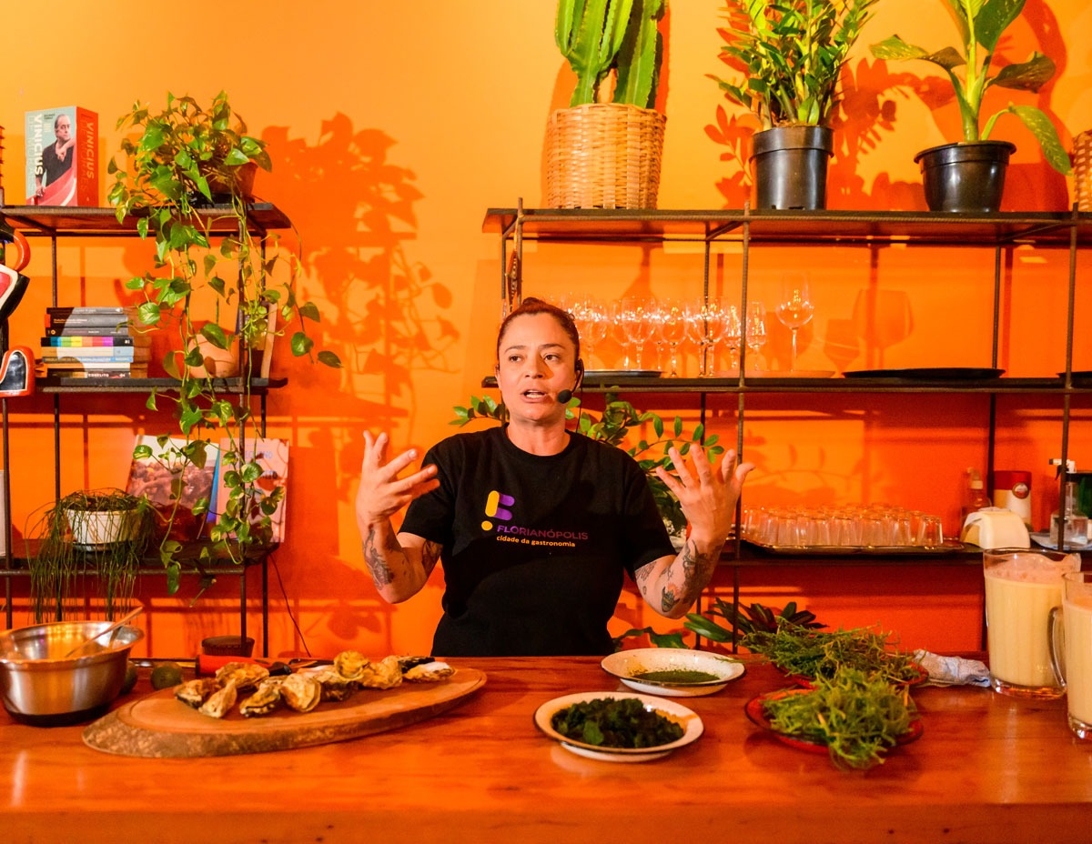 Chef Janete Borges realizou cozinha show com prato que uniu a tradição das ostras com insumos inovadores como algas e halófitas.