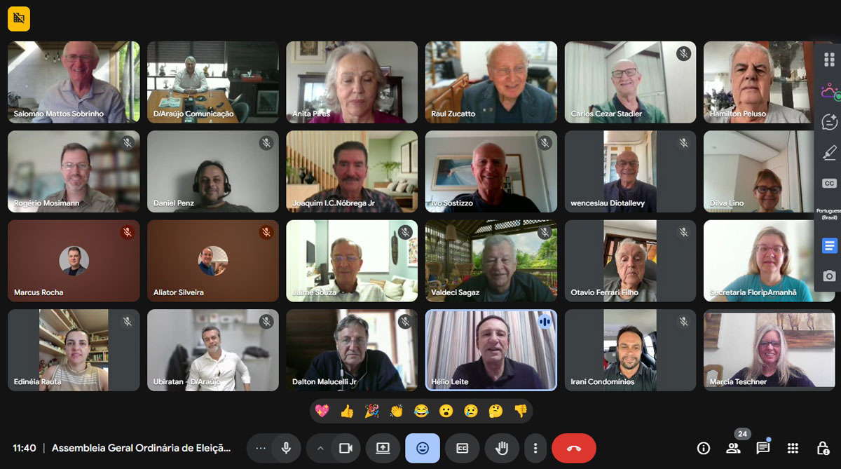 A Associação FloripAmanhã realizou nesta quinta-feira (13/11), sua Assembleia Geral Ordinária de Eleição, encontro online que definiu a Diretoria Executiva, o Conselho Fiscal e marcou a formalização da nova estrutura de Diretorias Técnicas para o biênio 2026/2027.