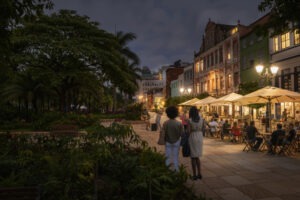 Entre as propostas de maior impacto, o estudo destaca a criação de uma nova praça pública verde adjacente ao Mercado Público e a transformação da Esteves Júnior em uma ‘rua escolar’, com infraestrutura desenhada para a segurança de crianças e pedestres. Estruturado em cinco eixos — que passam pela resiliência climática e mobilidade sustentável — o plano não é apenas um conjunto de obras isoladas, mas uma estratégia de longo prazo para conectar melhor o Centro Histórico à Beira-Mar Norte, tornando-o um bairro completo para viver, trabalhar e visitar.