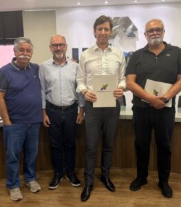 A Unimed Grande Florianópolis passa a integrar o Floripa Sustentável, tornando-se oficialmente a 48ª entidade do movimento. O convite foi feito pelo presidente do Floripa Sustentável, Roberto Costa, ao lado do vice-presidente da entidade e do coordenador de desenvolvimento econômico, Júlio Geremias e Neri dos Santos, durante encontro realizado nesta semana na sede da cooperativa médica.