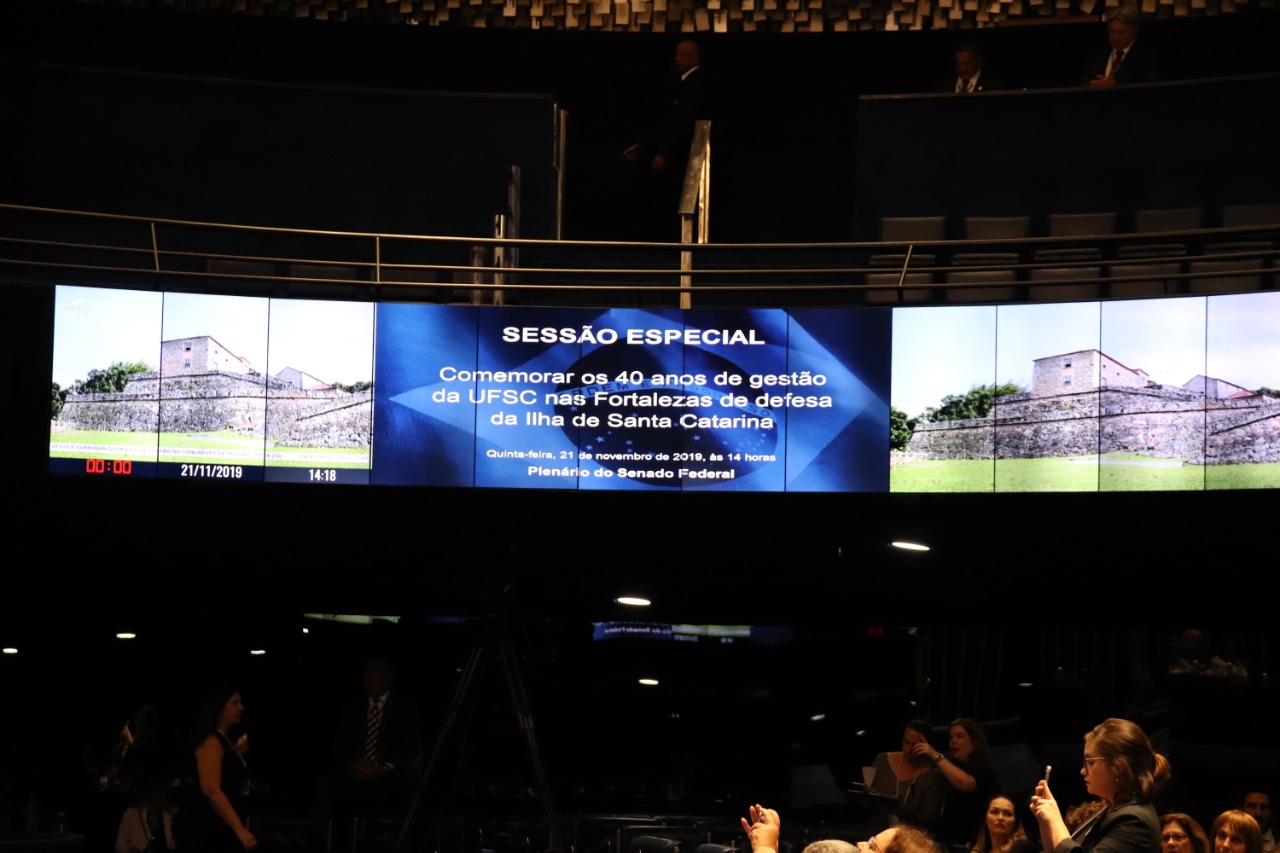 O Senado promoveu na tarde desta quinta-feira, dia 21 de novembro, em Brasília (DF), uma sessão especial no plenário para celebrar os 40 anos da UFSC à frente da gestão das fortalezas da Ilha de Santa Catarina. A instituição é atualmente responsável pelo gerenciamento, guarda, manutenção e conservação de três fortalezas históricas do litoral catarinense:...