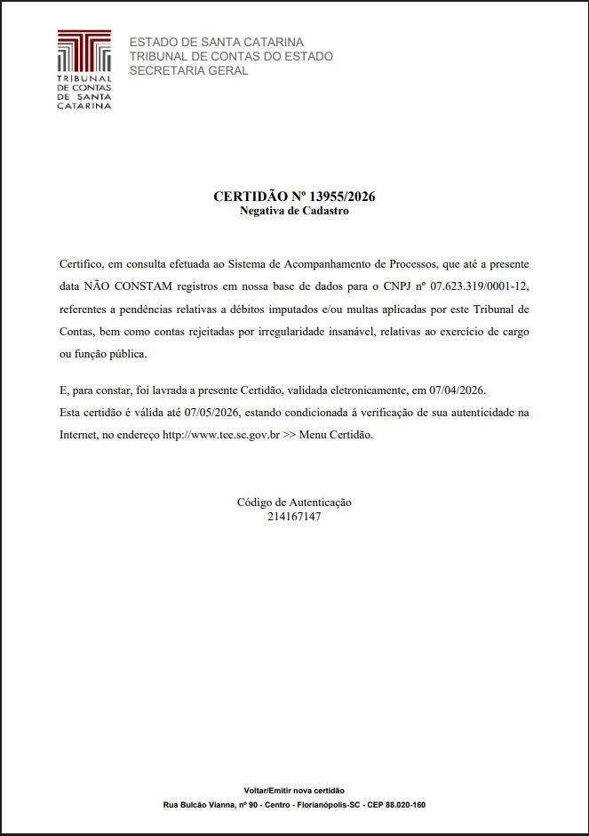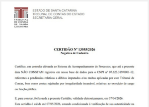 Certidão Negativa TCE/SC